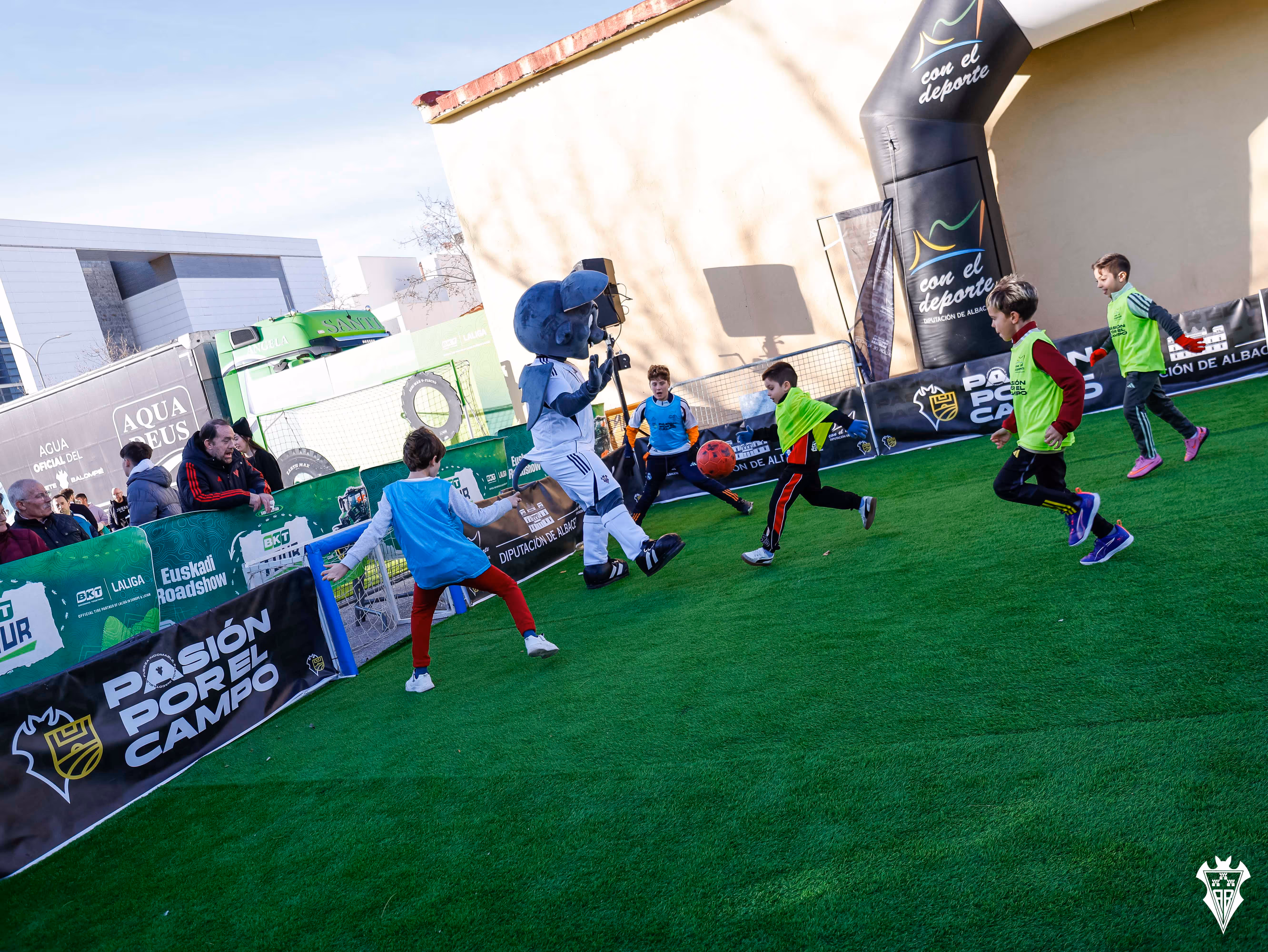 La jornada arrancó en los prolegómenos del partido con un ambiente festivo en las inmediaciones del estadio, donde se instaló un mini campo itinerante en la zona de taquillas y se desarrollaron distintas actividades para todos los públicos. Familias, niños y niñas disfrutaron de juegos, talleres y animaciones en una previa pensada para convertir el encuentro en una experiencia compartida más allá de lo deportivo. Durante la mañana también se repartieron camisetas conmemorativas.